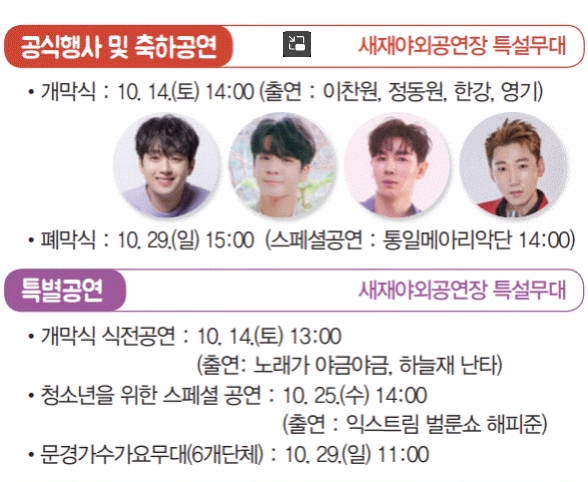 축제기간도 길어서 일정표가 3장이나 됩니다. 참고하시길 바랍니다.
