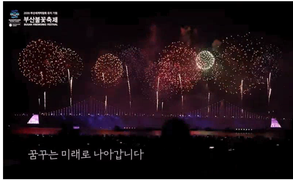 매년 광안리해수욕장을 화려하게 수놓는 부산불꽃축제가 어느덧 18회를 맞이하였습니다. 2005년 APEC정상회의 기념행사 일환으로 시작돼, 해를 거듭할수록 세계적인 관심을 받으며 부산 대표 축제로 자리매김하였습니다. 부산에서만 볼 수 있는 초대형 불꽃과 광안대교 경관조명을 활용한 미디어파사드 연출, 화려한 불꽃과 조명, 음악이 어우러져 스토리텔링이 가미된 부산멀티불꽃쇼를 만나볼 수 있습니다. 또한 광안리 해수욕장뿐만 아니라 동백섬, 이기대 앞까지 “3 point" 연출로 다양한 장소에서 불꽃쇼를 관람할 수 있습니다.
