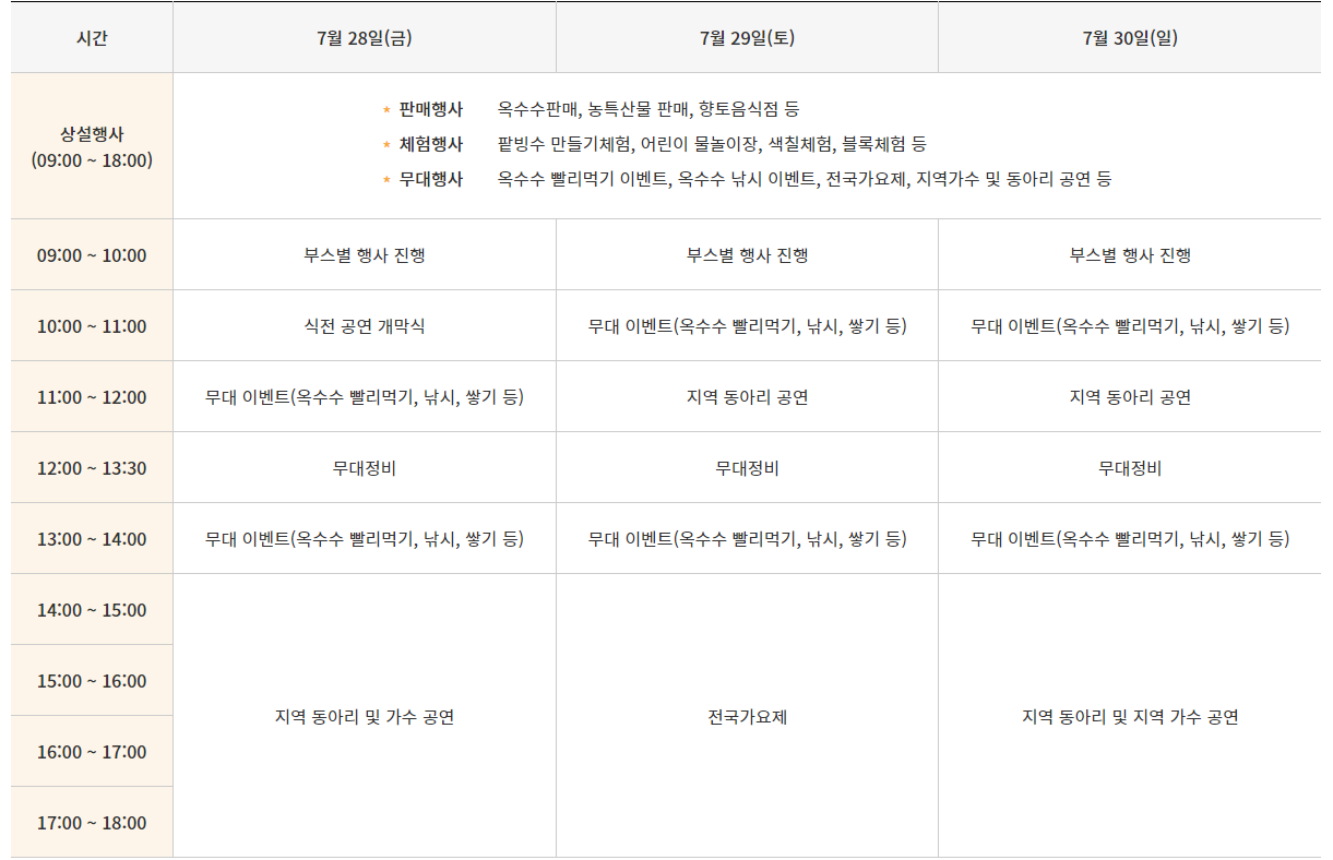 [2023년 7월 28일(금) ~ 2023년 7월 30일(일)] 홍천 찰옥수수 축제 - 여름의 정취를 느끼며 가족과 함께 즐기는 슬로푸드 이벤트