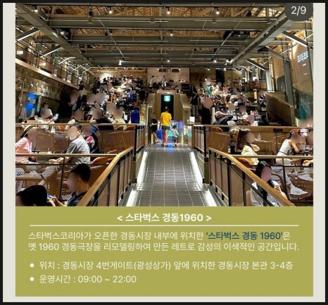 얼마 전에 생긴 스타벅스 경동 1960과 금성전파사와 함께 경동시장 3대 명소가 되기를 기대하며 시장활성화에 도움이