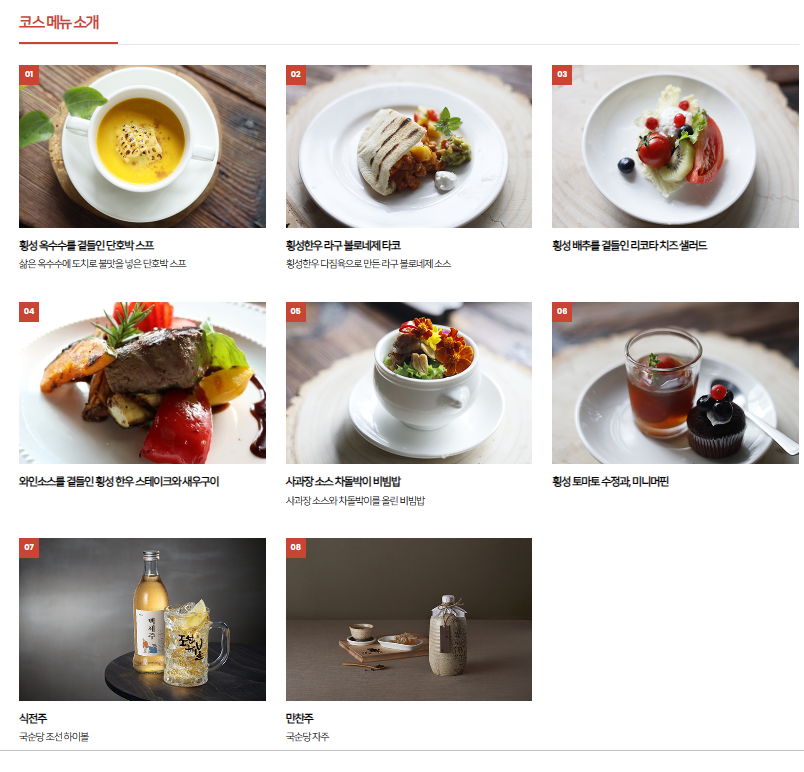 | 내 용 | · 셰프에드워드권(6일,9일), 유튜버히밥(7일,8일)과 함께하는횡성한우 미식파티 · 지역 생산 농산물과 함께하는 6가지의 코스요리 · 횡성 청정지역에서 자란 1등급 한우안심스테이크 · 국순당프리미엄 만찬주가 코스 내 무한제공 · 선착순 1일 300명, 1인 150,000원 100% 사전예약운영 · 캐치테이블 앱에서 '횡성한우 미식파티'를 검색하면 간편하게 신청가능 |