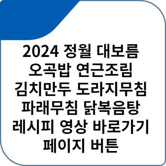 정월 대보름에는 대표적으로 오곡밥과 각종 나물이나 귀밝이 술 등을 통해 명절을 보내는데요. 이에 못지않게 다양한 음식을 즐기기도 합니다. 그래서 오곡밥, 연근조림, 김치만두, 도라지뮘, 파래무침, 닭볶음탕 레시피 보는 영상 페이지 버튼을 바로 남겨 드릴 테니 요리 시 참고해주셨으면 합니다.